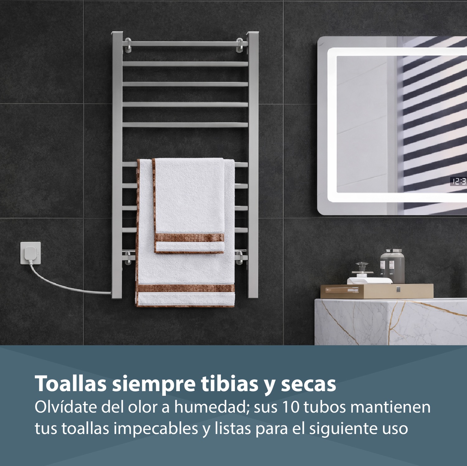 Con 65 W de potencia, este secador eléctrico proporciona un secado constante y seguro, ideal para climas fríos o baños con poca ventilación. Cuenta con 4 tubos calefactores que distribuyen el calor de manera uniforme, ayudando a reducir la humedad, los malos olores y la proliferación de hongos en las toallas.